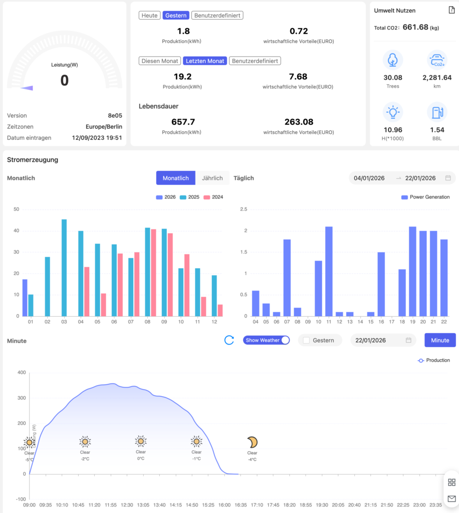 In https://klimabuero.org/uncategorized/amortisation-einer-balkonsolaranlage-in-berlin/ berichteten wir über die Amortisation einer Balkonsolaranlage in Berlin. Jetzt aktualisieren wir die Zahlen und testen ob die Erwartungen erfüllt wurden. Nach knapp 2 Jahren (22 Monaten) wurden 658 kWh erzeugt.